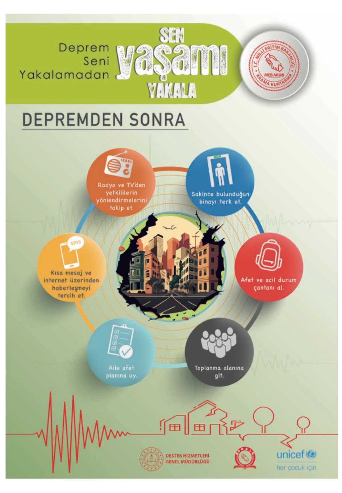 Bakanlığımız tarafından yürütülen "Yeşil Vatan-Benim Okulum Geleceğe Çare" etkinlikleri kapsamında 2025/2026 Eğitim - Öğretim yılı tematik takviminde Ekim ayı "Afetler ve Dayanıklılık Ayı" olarak belirlenmiştir. Bu doğrultuda öğrencilerimize afetlere hazırlık eğitimi verilmiş ve tahliye tatbikatı yapılmıştır.